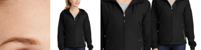 Outer shell of 100% nylon taffeta * Body, sleeves and hood lined with 75% polyester/13% rayon/12% cotton grey heather fleece * Center front zipper with inside storm flap * Hood with drawcord and sliders (Youth has elastic in hood instead of drawcord) * Set-in sleeves * Reinforced slash front pockets with zippers * Elastic cuffs and bottom band * Water-resistant * Machine-washable