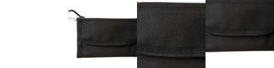 20-piece tool kit with components packed in case with hook and loop style closure and carabiner at corner