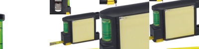 Includes black ink pen, mini self-adhesive note pad and bubble level tool