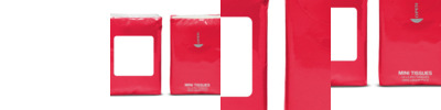 • Mini tissue pack in resealable pouch