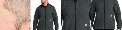 From jobsite to backyard barbeque, Carhartt Textured Fleece outerwear delivers easy-wearing warmth and everyday versatility. 7.3-ounce, 100% polyester Zip-through collar Two lower front zippered pockets Carhartt label sewn on left pocket Elastic binding cuffs Adjustable drop tail hem Relaxed fit