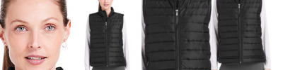 Shell: 100% recycled nylon; Water-rersistant finish; Inner Fill: 79% recycled nylon, 21% elastane; 1.75" horizontal quilt lines; Metal teeth zipper with zipper garage; Sewn in label at back neck; Silicone logo patch at upper back under neck seam; Side pockets with brushed knit bags; Sewn-in care and content label at lower left side seam; Relaxed fit; Fabric and garments are manufactured in a facility 100% powered by solar and wind energy. Fabric and garments are manufactured in a GreenCo certified facility. 450g of CO2 are saved with the production of each garment ;