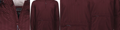 - Exterior hand pockets with zipper closure and zig-zap stitching for added interest