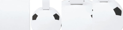 - Round metal cowbell featuring soccer ball stock art
