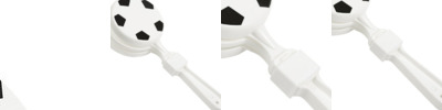 - Soccer-shaped plastic clappers featuring sport-themed stock art