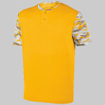 100% polyester wicking knit * 100% polyester wicking printed knit collar and sleeves * Wicks moisture away from the body * Pad print label * Self-fabric collar * Set-in sleeves * Two-button placket * Double-needle hemmed sleeves and bottom