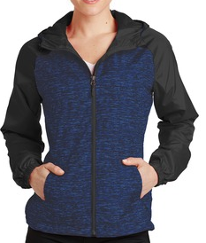 LST40 Sport-Tek® Ladies Heather Colorblock Raglan Hooded Wind Jacket