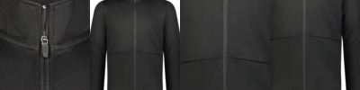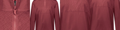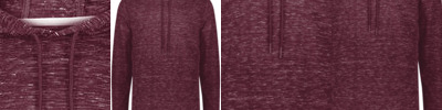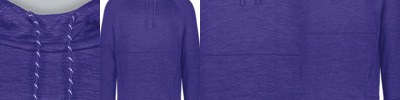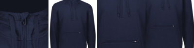 - Scuba shaped 3-piece hood with contrast color lining and drawcord