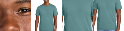 4.6-ounce, 100% ring spun cotton 60/40 CVC cotton/polyester (Heathers) 90/10 CVC cotton/polyester (Athletic Heather, Peppered Red Heather) Seamless 1x1 rib knit collar with clean neckline Shoulder to shoulder taping Double-needle sleeves and hem Classic fit Tear-away label