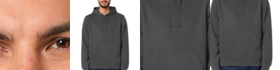 A premium hoodie with a classic look. Organic and recycled fabrics blend beautifully, offering cozy warmth with refined details that stand out from the crowd. 10.3-ounce (350 GSM) 80% organic combed ring spun cotton/20% recycled polyester brushed 3-end fleece, cotton face Double self-fabric lined hood Dyed-to-match round drawcords with metal tips Metal eyelets Herringbone back neck taping Self-fabric half moon at back neck 1x1 rib knit cuffs and hem Double-needle topstitch on armholes, cuffs and hem seams Front pouch pocket 100% recycled polyester tear-away label Colors up to 5XL: Black, French Navy, Heather Grey, Natural Raw, Stargazer, White Modern medium fit: Designed for a roomier fit, opened up across the chest and shoulders.