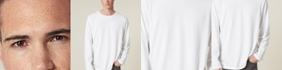 Made from in-house organic cutting waste. Set-in sleeve. 1x1 rib at neck collar. Inside back neck tape in self-fabric. Sleeve hem and bottom hem with wide double needle topstitch.