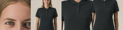 The Stella Coaster mid-light polo for women. Fitted. Set-in sleeve. Flat knit rib on collar and sleeve hem. Inside heavy single Jersey back neck tape. Front inserted placket with two buttons in matching body colour. Slit and bartack finish at side seam hem. Single-needle topstitch at shoulder seams. Bottom hem with narrow double-needle topstitch.