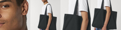 Top edge double folded for strength and clean finish. Side soufflet. Long handles with reinforced cross stitch. Single edge stitch on all seams in matching body colour thread. Unisex. 80% recycled cotton, 20% recycled polyester. Canvas.