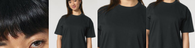 The women’s boxy t-shirt. Relaxed fit. Set-in sleeve. 1x1 rib at neck collar. Inside back neck tape in self-fabric. Narrow twin-needle topstitch at sleeve cuff and hem.
