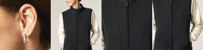 Sleeveless. Elastic binding at neck edge, armhole and hem. Inside back neck grosgrain loop. Nylon coil zip with metal zip pull and cord ending. Brushed fabric with anti-pilling finish on the inside and outside. Front side welt pockets with zip opening. Inside back neck tape in recycled polyester.