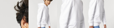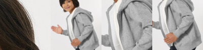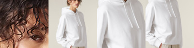 Set-in sleeve. Double-layered hood in single Jersey. Wider neck opening for easy dressing. Inside back neck tape in single Jersey. Self-fabric half-moon at back nec. Single needle topstitch at neckline and along hood opening. 1x1 rib at sleeve hem and bottom hem. Sleeve hem and bottom hem with twin-needle topstitch.