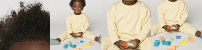 The iconic kids’ crew neck sweatshirt. Medium fit. 1x1 rib at neck collar, sleeve hem and bottom hem. Self-fabric half moon at back neck. Single-needle topstitch at neck collar. Twin-needle topstitch centered on seam at hem, cuff and armhole.