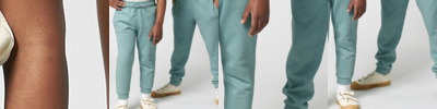 The iconic baby jogger pants. Medium fit. Self-fabric, elasticated, grown-on waistband. Narrow twin-needle at waistband base. No side seam for extra comfort. 1x1 rib at bottom leg cuff.