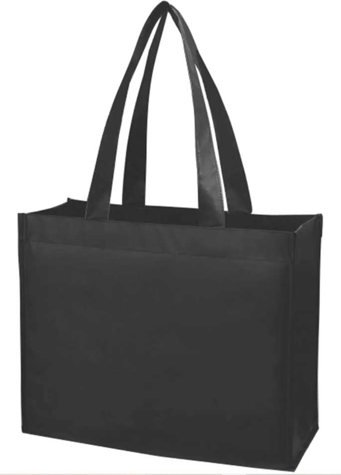 Medium economy shopping tote with 28" handle made of 90gsm non-woven fabric and Eco-friendly fabric. Can be easily folded into pocket size. Large main compartment and deep gusset.