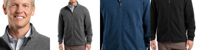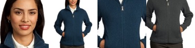 This rich piece is ideal indoors and out. Lightweight, yet warm, it has a soft sweater-knit face with a fleece interior. A cadet collar, reverse coil zipper and zippered pockets enhance the appeal. Binding on cuffs and hem. Made of 12-ounce, 100% polyester sweater fleece.
