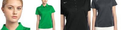 Stay comfortable before, during and after the round in this sophisticated style. Dri-FIT moisture management technology helps keep you dry and focused. Contrast stitch details on the seams and collar. Tailored for a feminine fit. Other features include a self-fabric collar, three-button placket and open hem sleeves. A contrast heat transfer Swoosh design trademark is on the left hem. Made of 4-ounce, 100% polyester heathered jersey Dri-FIT fabric.