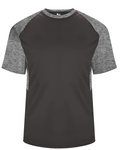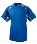 100% polyester moisture-management antimicrobial performance fabric • 3.5-oz. • sublimated digital side & sleeve panel inserts • Self-fabric collar • Double needle hem • Badger heat seal logo on left sleeve • Sizes: XS-L, see colors