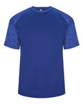 100% polyester moisture-management antimicrobial performance fabric • 3.5-oz. • sublimated digital side & sleeve panel inserts • Self-fabric collar • Double needle hem • Badger heat seal logo on left sleeve • Sizes: S-4XL, see colors