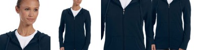 95% preshrunk cotton, 5% spandex; Fitted and feminine full-zip hoodie; Plush, custom-made French terry; Soft hand, freedom of movement, lasting recovery & great fit; Ribbed waistband; Set-in sleeves; YKK zipper;