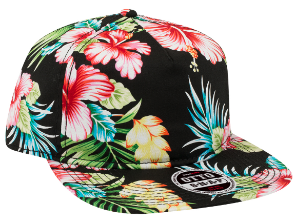 167-1210 HAWAIIAN PATTERN COTTON TWILL SQUARE FLAT VISOR FIVE PANEL PRO STYLE SNAPBACK HAT