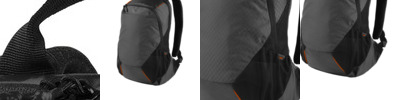 500D poly Unique curved zippered opening Large pocket with interior organization Easy-access decoration area Large main compartment Two compression straps across the body Ergonomic shoulder straps with mesh valuables pocket Two exterior mesh pockets Hydration pocket Integrated padded luggage trolley pass through on back Laptop sleeve: 9.8'h x 11.8'w; fits most 15' laptops Dimensions: 20'h x 11.8'w x 7'd Capacity: 2,013 cu.in./33 L Weight: 2.14 lbs./0.97 kg Note: Bags not intended for use by children 12 and under.