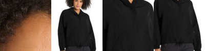 STAY-COOL WICKING STRETCH REFLECTIVE DETAILS 8.6-ounce, 95/5 poly/spandex with stay-cool wicking technology OGIO heat transfer label for tag-free comfort OGIO embossed neck taping Black binding around hood and cuffs Black reverse-coil locking zipper with chin guard Zippered right chest pocket Ventilating perforation on center back Reflective O on back right shoulder Front pockets with mesh lining Thumbholes Curved back hem Reflective O on front left hip