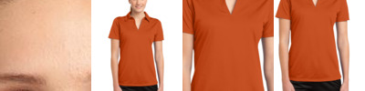 This polo delivers timeless style and performance with ultra-smooth double pique and Dri-FIT moisture management technology. Design features include a streamlined self-fabric collar and open hem sleeves. Tailored for a feminine fit with a five-button placket. A heat transfer contrast metallic silver Swoosh design trademark is on the left sleeve. Made of 6-ounce, 100% polyester Dri-FIT fabric.